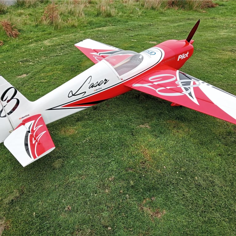 Pilot RC Laser 103" with DLE 130cc engine and 28x11 carbon prop.This picture was taken at the Port William Gala week model aircraft display.